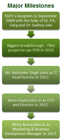 With a mission at hand, SGPL has ventured out towards a better future and facilitating it is one of our biggest objectives. As a part of our core objectives, we have grown YOY to a total of 40 office staff in 2013, which includes GIS engineers, assistants and experts in mapping. Externally, we also have a network of who's who in the field of Watershed Management, Land Information Management, Irrigation systems, Mining, Geology and an affluent advisory board with combined expertise of over 200 years. The team also saw its new GM in 2012, Mr. Yadvinder Singh Bhuttar (who is also our Sr. Technical Specialist) a CFO, Annu Gupta in 2012 (who is also my significant half in personal life) and a Business Development Lead, Richa Arora in Q3, 2013. Our technical expertise, together with the guidance from the who's who in the industry and our dedication to make it happen helps us to be the instrument of change towards the common good. I am grateful to everyone in the team who is working towards this common goal.